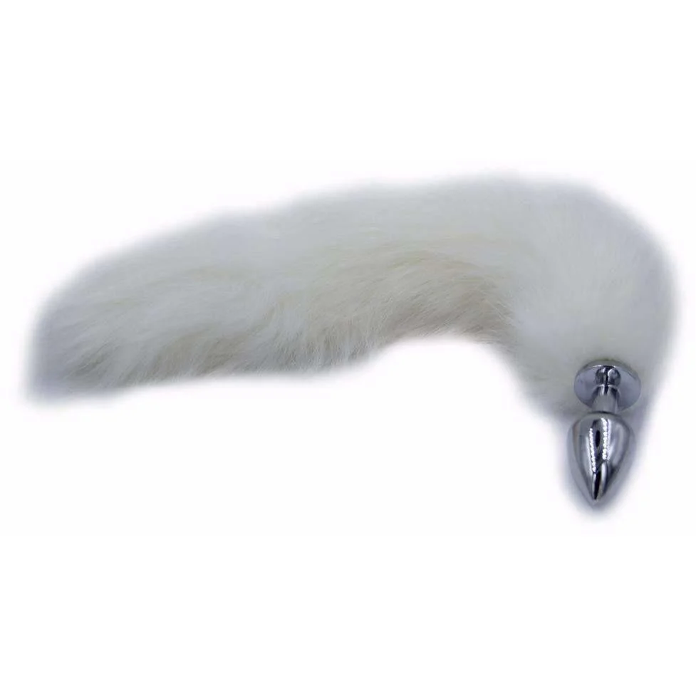 White Faux Fur Stainless Steel Plug Tail - 3 Sizes