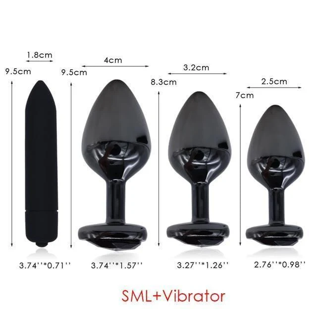 Three Piece Black Heart Buttplug Set + 10 Speed Vibrator