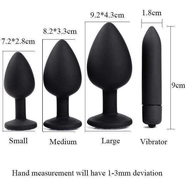 Three Piece Silicone Jewelled Buttplug Set + 10 Speed Vibrator